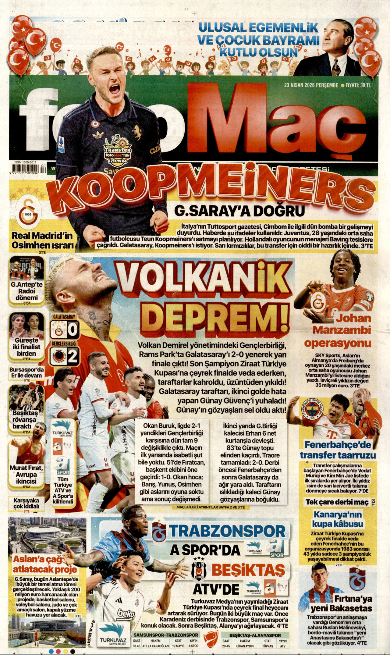 FOTOMAÇ Gazetesi 23 Nisan 2026, Perşembe Günü Manşeti
